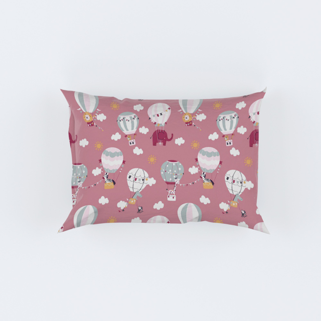 Σεντόνι με λάστιχο από 100% βαμβακερό ύφασμα με αερόστατα σε χρώμα σάπιο μήλο, ακριβώς στις διαστάσεις που χρειάζεστε.