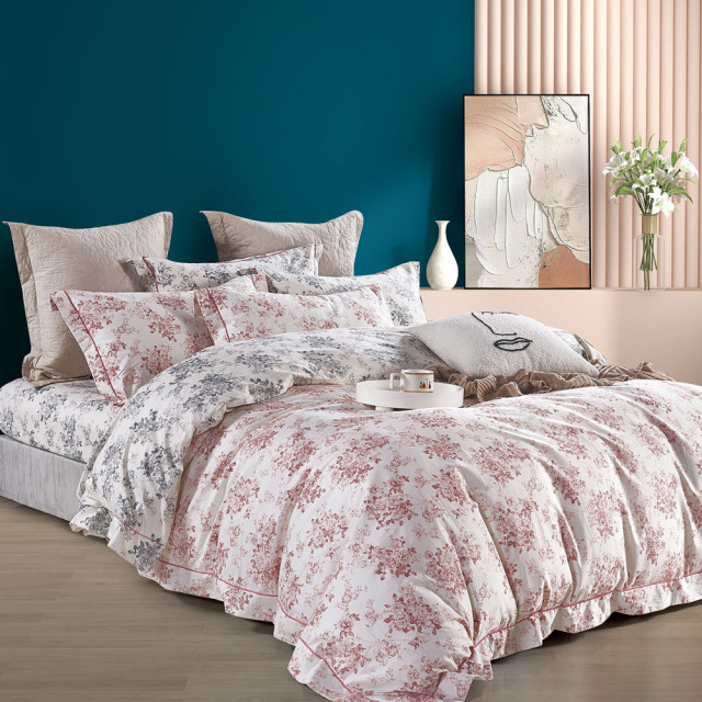 Ένα υπέρκομψο, υπέρδιπλο πάπλωμα, διπλής όψης, με φλοράλ μοτίβο σε λευκό φόντο με ροζ λουλούδια από τη μία όψη και λευκό φόντο με γκρι λουλούδια από την άλλη. Το εξωτερικό ύφασμα είναι κατασκευασμένο από 100% βαμβακοσατέν, 230 κλωστών με νήματα πενιέ, που το καθιστά εξαιρετικά μαλακό, ανθεκτικό και εύκολο στο σιδέρωμα, ενώ η γέμιση του είναι από ψημένη, υποαλλεργική, πολυεστερική βάτα 380γρ/τμ. Η ποιότητα και το μοναδικό τους σχέδιο τους θα δώσουν στην κρεβατοκάμαρά σας ένα ξεχωριστό στυλ. Στο σετ περιλαμβάνονται και δύο μαξιλαροθήκες τύπου oxford διπλής όψης.